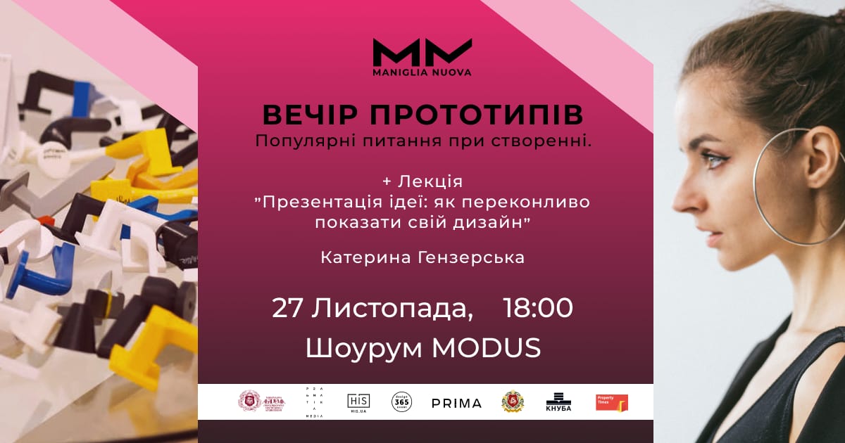 27 листопада відбудеться подія для учасників конкурсу Maniglia Nuova, присвячена створенню прототипів та професійній подачі дизайнерських ідей. Програма складається з лекції «Презентація ідеї: як переконливо показати свій дизайн» та розмови про прототипування з Євгеном Потьомкіним….