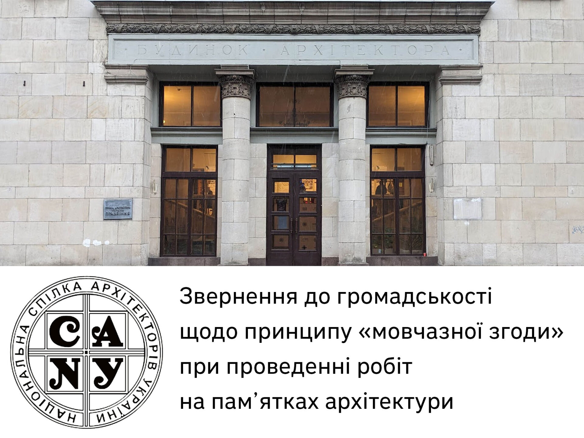 Звернення до громадськості щодо принципу «мовчазної згоди» при проведенні робіт на пам’ятках архітектури
